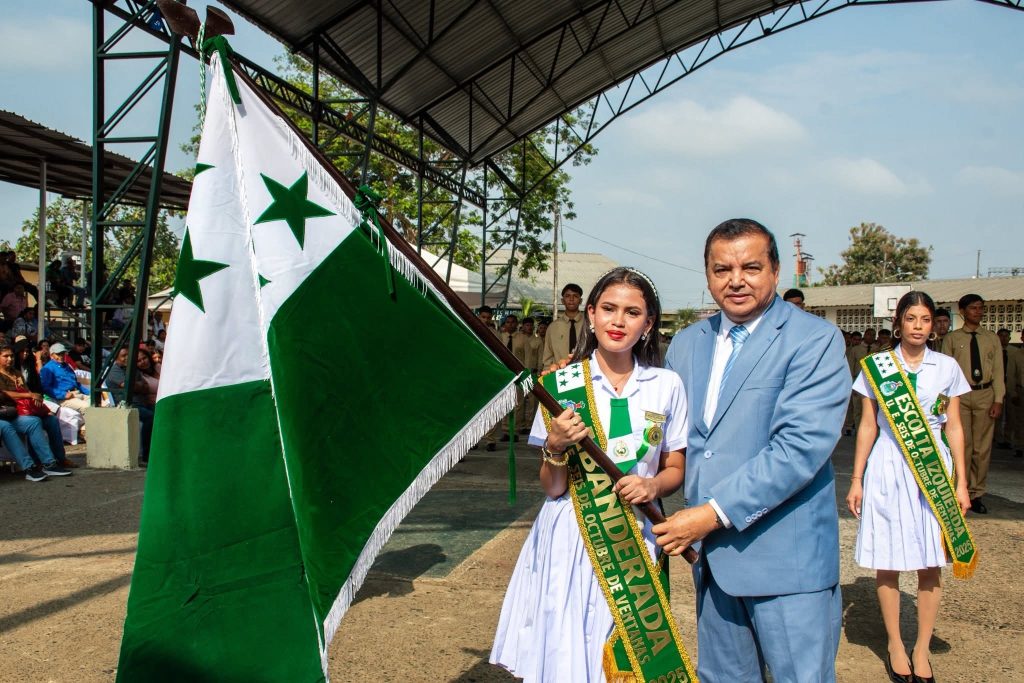 El alcalde Carlos Carriel Abad tuvo el honor de acompaรฑar a la comunidad educativa de la Unidad Educativa 6 de Octubre en el juramento a la Bandera Nacional.