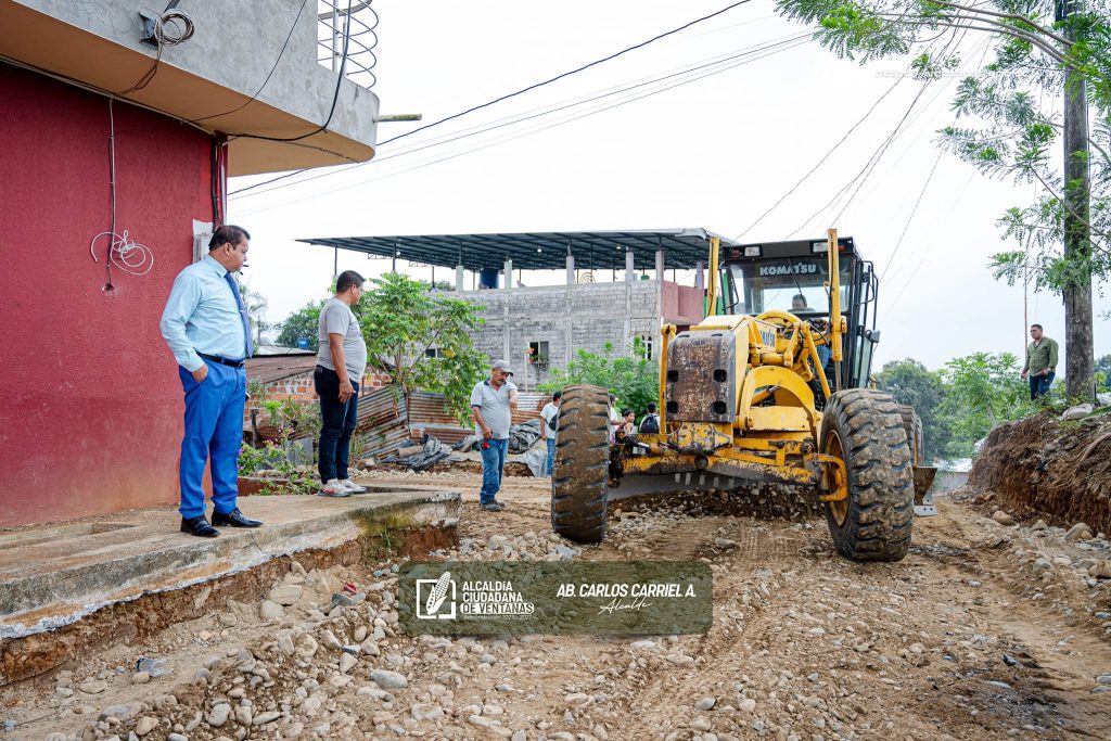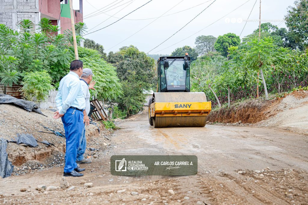 Durante la supervisiรณn de los trabajos, el alcalde Carlos Carriel Abad compartiรณ con los vecinos y constatรณ de cerca el progreso que estรก transformando la zona.