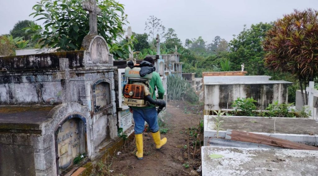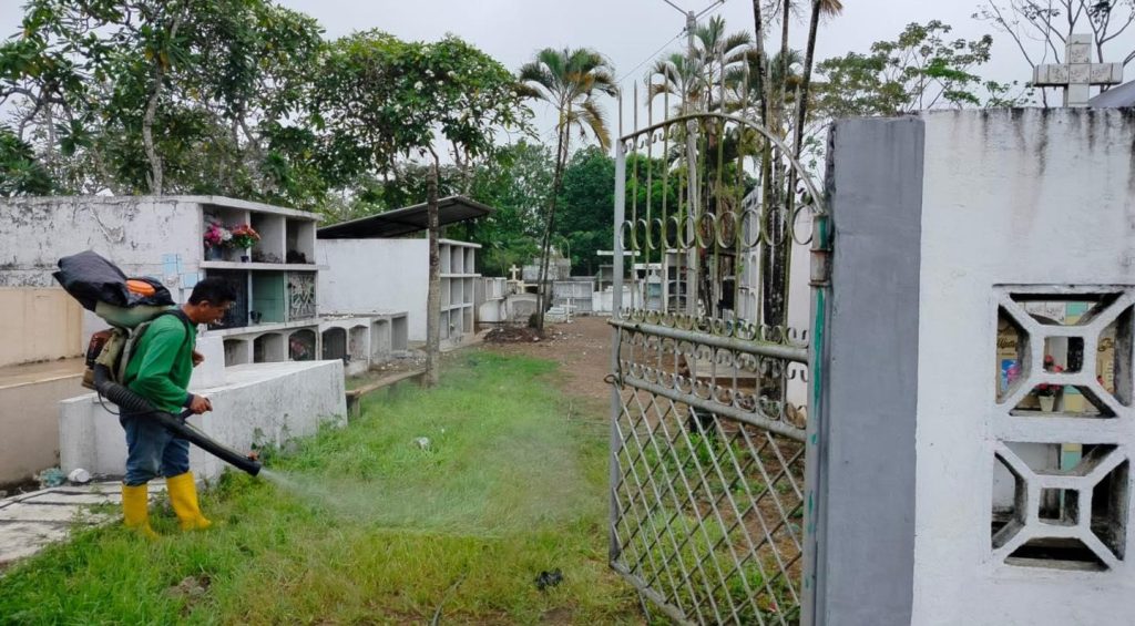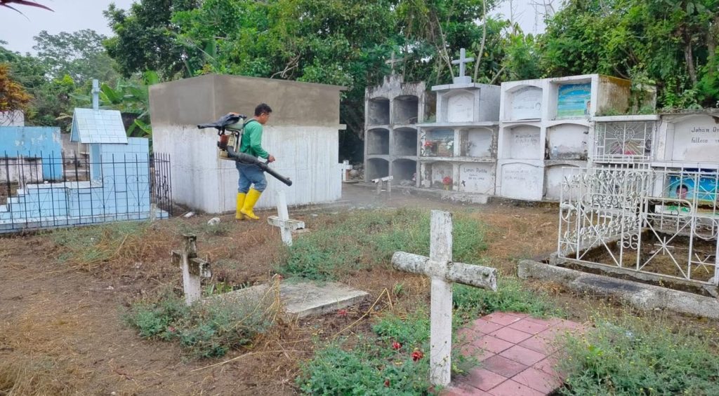 Este día, personal municipal realizó labores de control de maleza y limpieza en los cementerios de las parroquias Chacarita, Los Ángeles y el recinto Barranco Colorado, con el propósito de mantener estos espacios en óptimas condiciones y ofrecer un entorno digno, limpio y respetuoso para las familias que los visitan.