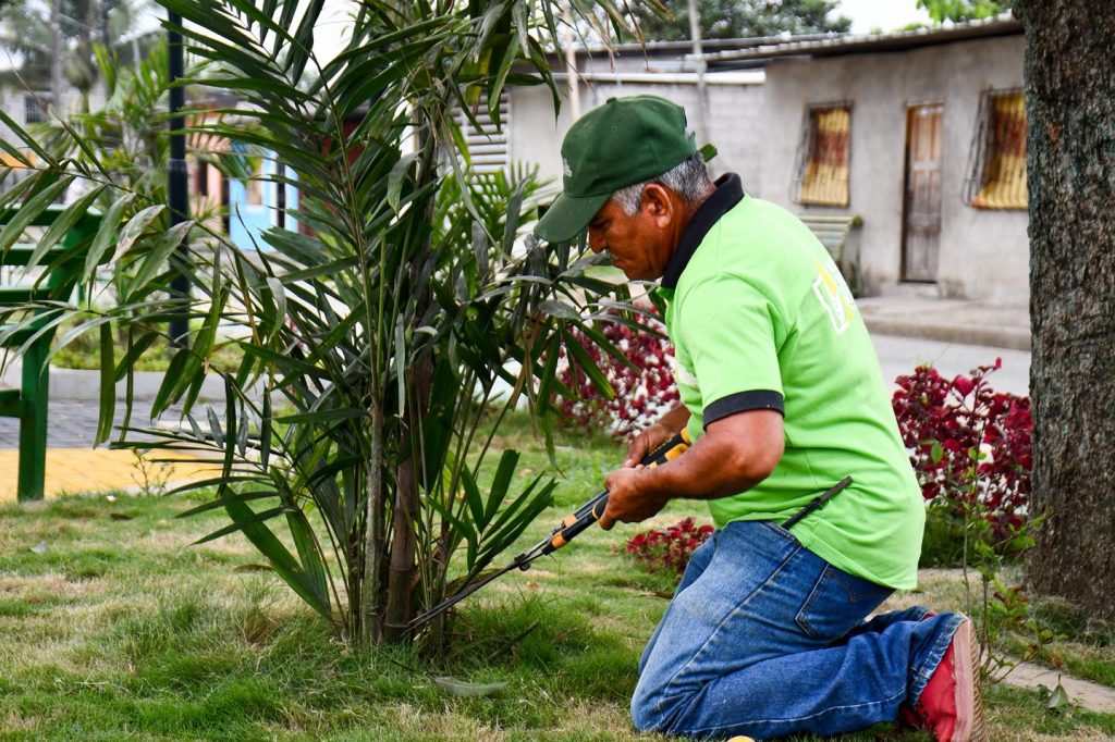 Por disposición del alcalde Carlos Carriel, se realizan trabajos de mantenimiento de las áreas verdes del parque Kalabí, con el fin de conservar espacios limpios y agradables para la ciudadanía.